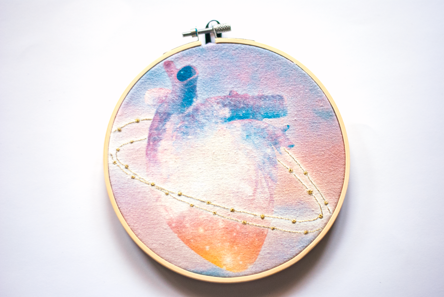 Bastidor bordado a mano sobre algodón impreso. Ideal para decorar las paredes de cualquier espacio de tu hogar u oficina. El toque diferente y original que necesitas.
