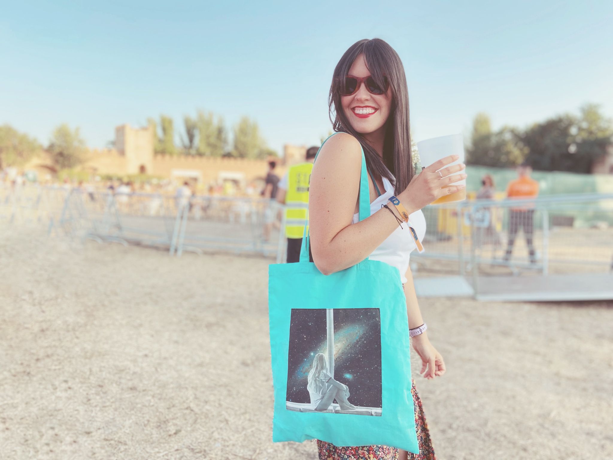 Bolsillo impreso en algodón reutilizado confeccionado a mano.