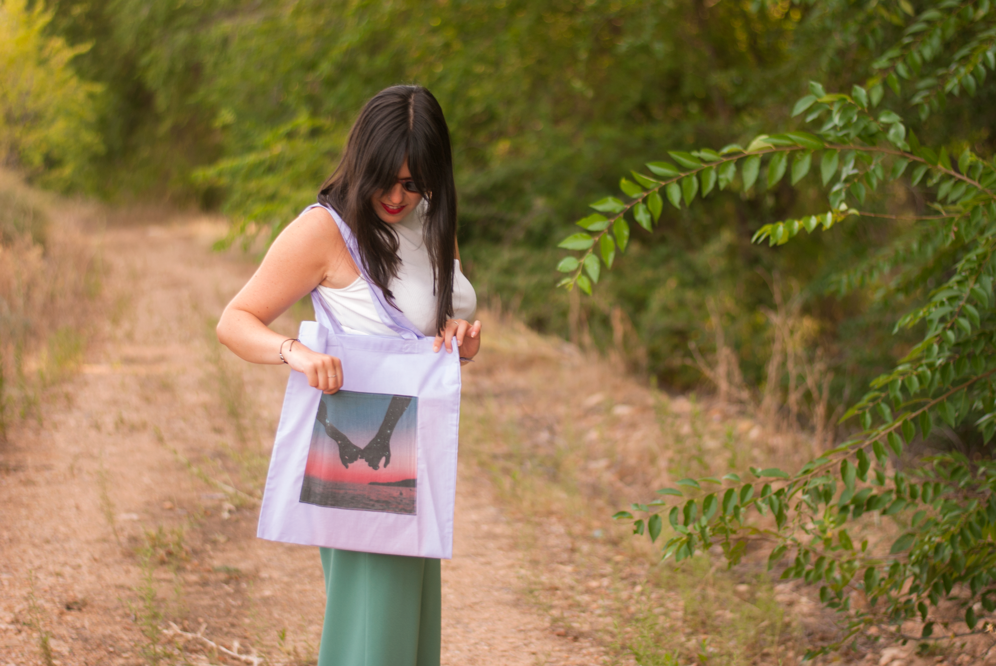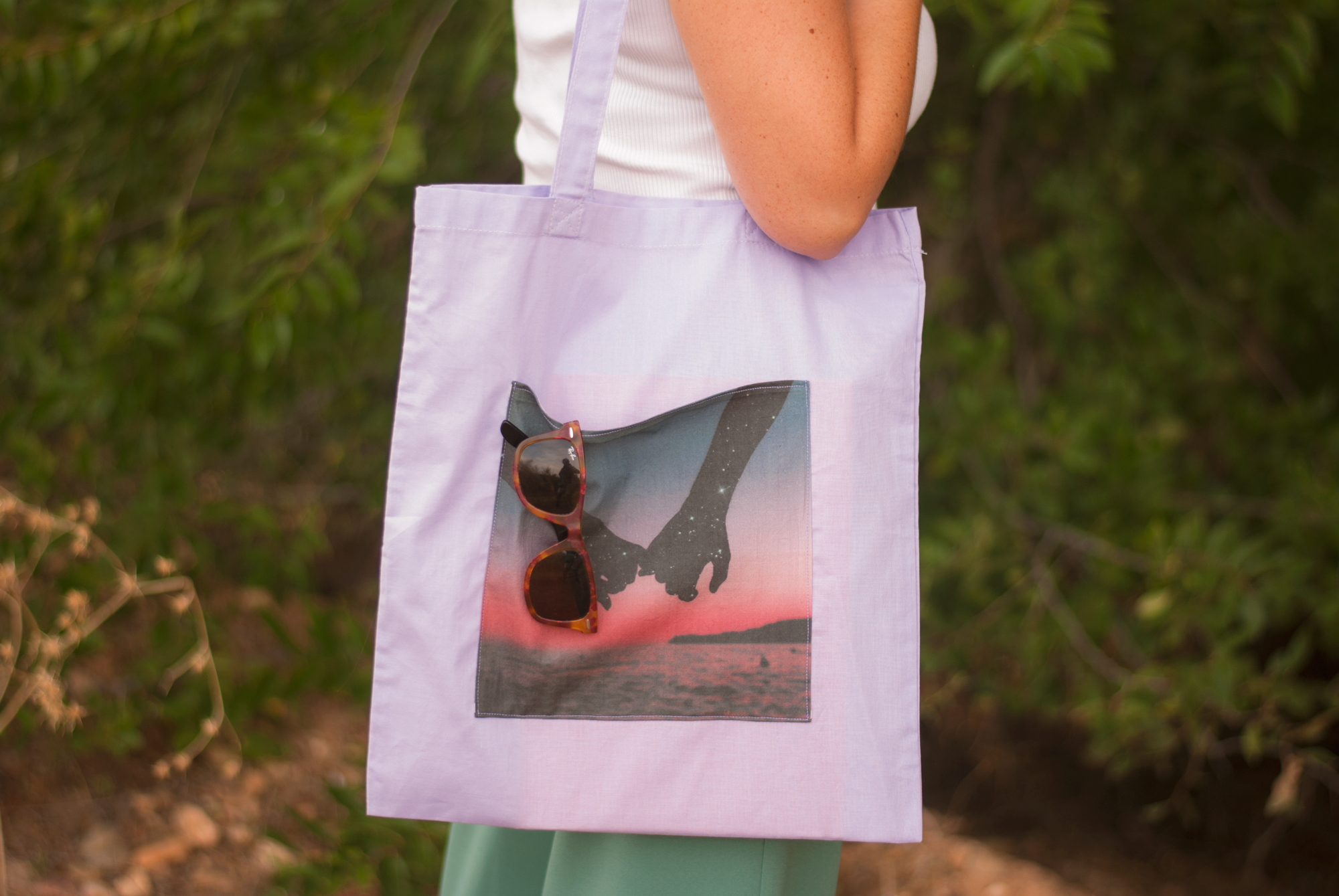 Bolsillo impreso en algodón reutilizado confeccionado a mano.